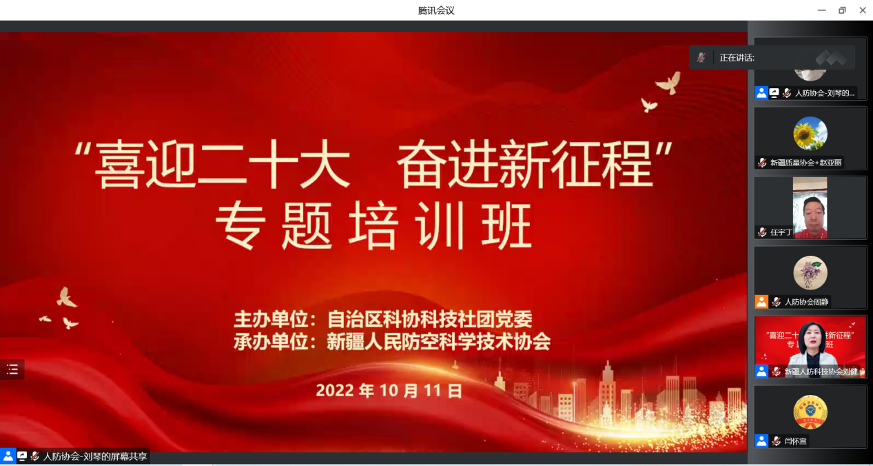 10月11日,新疆質量協(xié)會黨支部組織全體黨員及職工群眾參加自治區(qū)科技社團“喜迎二十大 奮進新征程”專題培訓。