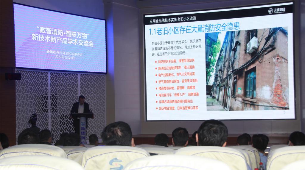 會上,與會代表一起聆聽了遼寧營口天成集團新疆區域負責人王祥基和新疆利安技術有限公司智慧消防事業部總經理白俊祥所做的“數字消防優秀解決方案”和“消防物聯網創新產品”學術交流報告。