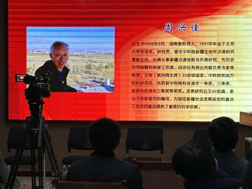 11月30日,新疆地理學(xué)會(huì)依托自治區(qū)科協(xié)重點(diǎn)資助項(xiàng)目,與新疆地理學(xué)會(huì)黨支部、國(guó)家荒漠-綠洲生態(tài)建設(shè)工程技術(shù)研究中心黨支部、新疆植物學(xué)會(huì)黨支部、新疆土壤與肥料學(xué)會(huì)黨支部聯(lián)合開展支部共建,在中國(guó)科學(xué)院新疆生態(tài)與地理研究所實(shí)驗(yàn)樓一樓會(huì)議室舉辦了“科技興疆偉業(yè)中優(yōu)秀地理科學(xué)家精神譜系挖掘梳理與宣傳活動(dòng)”。活動(dòng)采取節(jié)目訪談形式,邀請(qǐng)了周興佳、潘伯榮、閻順、趙興有等四位老科學(xué)家嘉賓,現(xiàn)場(chǎng)向青年科技工作者講述了他們科技戍邊、艱苦探索、矢志不渝的精彩故事,并與現(xiàn)場(chǎng)31名青年科技工作者進(jìn)行問答互動(dòng)。活動(dòng)由中國(guó)科學(xué)院新疆生態(tài)與地理研究所黨委委員、國(guó)家荒漠-綠洲生態(tài)建設(shè)工程技術(shù)研究中心黨支部書記、新疆地理學(xué)會(huì)黨支部組織委員李生宇正高級(jí)工程師主持。