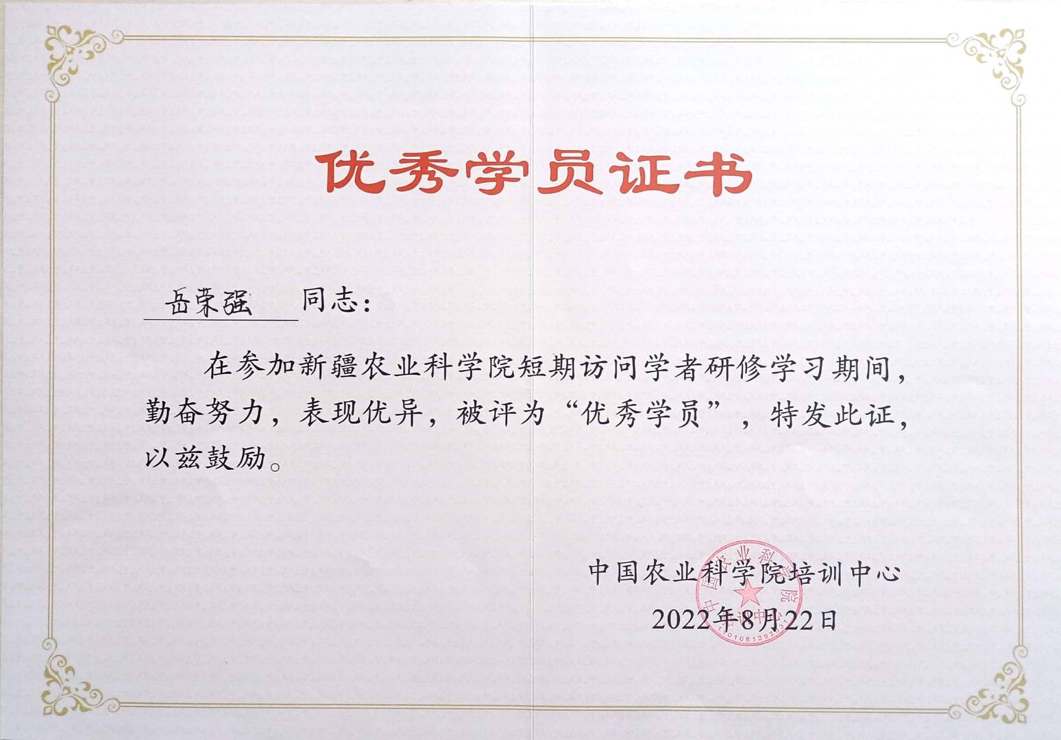 副編審岳榮強7月4日-8月22日在中國農業科學院參加第四次新疆農科院訪問學者學習班,對接中國農科院信息研究所《智慧農業(中英文)》編輯部,在訪學期間,系統學習了期刊內容新媒體傳播技術,并參與執行中科院自然科學期刊研究會項目“融媒體建設與傳播策略”,對入選2019年卓越期刊中運營多種新媒體期刊作為樣本,對期刊類型、作者群體、新媒體發表內容、閱讀情況等進行統計分析,探究不同平臺內容傳播規律。8月22日圓滿完成學習任務,取得“中國農業科學院國家級專業技術人員繼續教育基地培訓證書”,并被評為“優秀學員”。