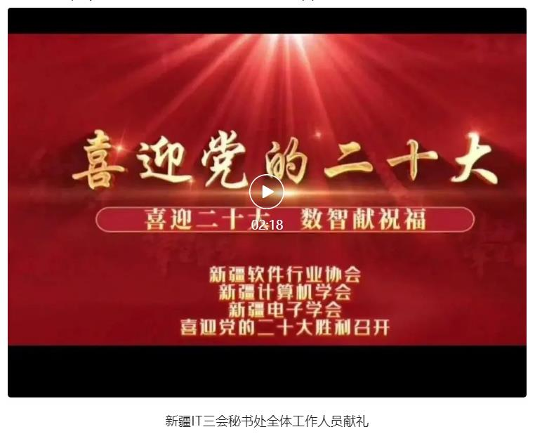 為喜迎黨的二十大勝利召開,新疆軟件行業協會、新疆計算機學會、新疆電子學會(以下簡稱“新疆IT三會”)開展“喜迎二十大 數智獻祝?!弊髌氛骷顒?。會員企業通過拍攝照片、視頻的方式向偉大的黨送去真摯祝福,表達了IT企業們對黨和祖國的無限熱愛。