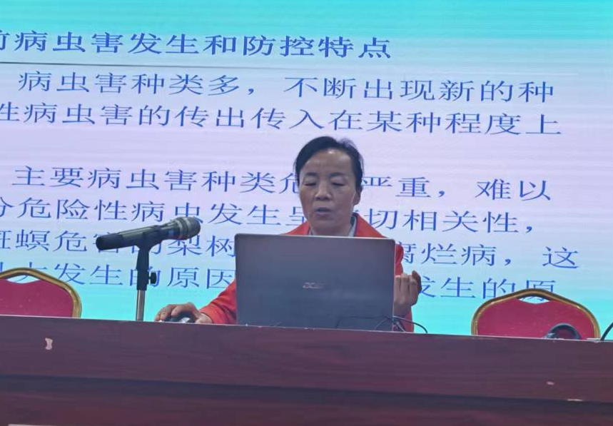 巴州氣象局援疆干部、副局長劉軍在培訓會上發表講話。他表示,專家服務基層示范團這樣的“面對面”互動交流,有助于了解果農的需求,巴州氣象局、香梨特色農業氣象服務中心將根據果農們的需求有針對性地做好香梨氣象服務,為香梨產業發展保駕護航,為鄉村振興貢獻力量。
