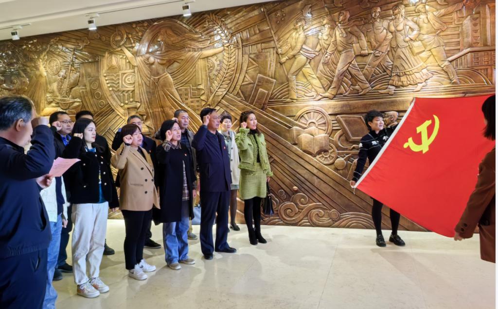 在圖書館前,全體黨員面對鮮紅的黨旗重溫入黨誓詞。大家一致認(rèn)為,通過參觀學(xué)習(xí),加深了對偉大建黨精神的深刻理解,激勵(lì)我們攻堅(jiān)克難、踔厲奮發(fā)。