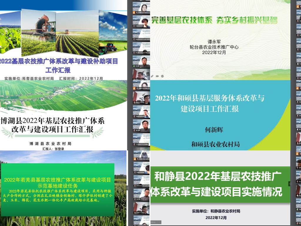 本次活動采取線上考評的形式,邀請了自治區農業農村廳、新疆農業科學院、江蘇省農學會、自治區農業技術推廣總站等有關方面的專家擔任評委。考評活動通過PPT匯報、專家提問賦分相結合的形式,圍繞組織管理、實施內容和實施效果等三方面,對照11項考核評價指標,對2022年巴州基層農技推廣體系改革與建設項目縣(市)項目實施情況進行了全面的考核評價,并公布了最終考評結果。