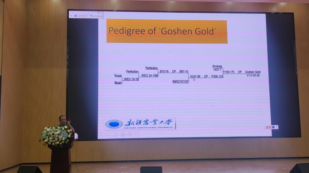 大會學術交流階段,王全輝、李莉、姜全等21名專家學者,圍繞生態(tài)低碳農(nóng)業(yè)探討、新時代水果產(chǎn)業(yè)高質量發(fā)展思路、“輕騎兵+電商+金融”農(nóng)技推廣創(chuàng)新模式助力三華李產(chǎn)業(yè)高質量發(fā)展等方面作了內容豐富的學術報告。新疆園藝學會理事何天明教授和謝輝研究員,在大會上分別作“美國杏引種和育種進展”“新疆杏產(chǎn)業(yè)發(fā)展現(xiàn)狀”報告。