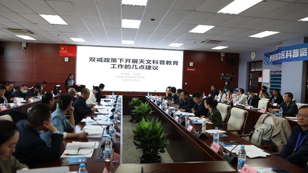 會(huì)上,自治區(qū)科協(xié)對(duì)過去一年來的科普資源助推“雙減”工作情況進(jìn)行了總結(jié),部分地州市科協(xié)、中科院新疆天文臺(tái)、新疆自然博物館、克拉瑪依市青少年科技中心和部分中小學(xué)校代表作了典型經(jīng)驗(yàn)交流。克拉瑪依市科協(xié)副主席汪正巧在交流中談到,克拉瑪依市科協(xié)整合社會(huì)資源,拓展助力“雙減”服務(wù)平臺(tái),積極推動(dòng)全市27家涵蓋科技場(chǎng)館、教育科研、產(chǎn)業(yè)園區(qū)等科普教育基地不斷完善條件,增加科普設(shè)施,開發(fā)科普研學(xué)課程,編制實(shí)踐活動(dòng)資源包,建立科學(xué)工作室,豐富“雙減”后科普教育內(nèi)容。中科院新疆天文臺(tái)科學(xué)傳播中心馬應(yīng)秀圍繞天文科普課體系的創(chuàng)建、創(chuàng)新課題的研發(fā)、天文教室的標(biāo)準(zhǔn)化建設(shè)和天文研學(xué)方案的制定等方面,做好天文科普教育提出建議。克拉瑪依市青少年科技活動(dòng)中心主任劉雪松談到,在落實(shí)“雙減”政策過程中,圍繞主動(dòng)融入學(xué)校,豐富學(xué)校的課后托管時(shí)段的課程,培養(yǎng)跟崗老師,助力學(xué)校基礎(chǔ)教育發(fā)展等方面的經(jīng)驗(yàn)做法。烏魯木齊市第76小學(xué)黨支部書記楊文慧,圍繞加強(qiáng)科學(xué)教師團(tuán)隊(duì)培養(yǎng)、豐富科學(xué)課程、強(qiáng)化科普資源配置等方面進(jìn)行了交流,通過積極開展科普研學(xué)活動(dòng),讓孩子們從探索、嘗試、參與中體驗(yàn)科技的魅力。和田地區(qū)科協(xié)黨組書記吐拉力·達(dá)吾特巴克,交流了和田地區(qū)如何利用北京援疆資源開展“雙減”后的青少年科技教育活動(dòng),在當(dāng)?shù)叵破饘W(xué)科學(xué)、愛科學(xué)、用科學(xué)的熱潮等。