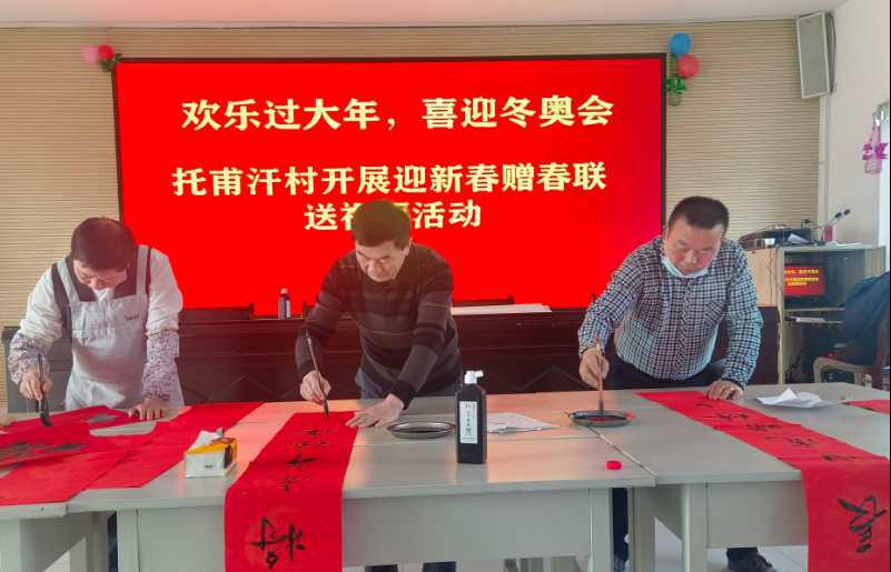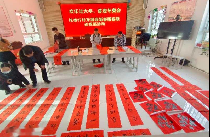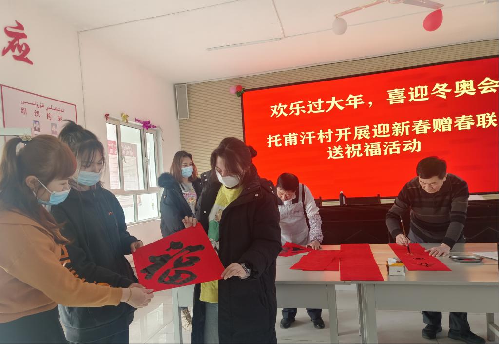 無聯不成春,有聯春更濃。“過大年 寫春聯”是中華傳統民俗文化,是象征吉祥、表達人民向往美好生活的風俗。春節臨近,年味越來越濃,為了豐富村民文化,喜迎虎年新春,近日,阿克蘇地區科協黨組成員、副主席、二級調研員王敬西帶領科協下沉干部與駐村工作隊員為托甫汗村村民開展“迎新春、贈春聯、送祝福”活動。活動現場邀請到了阿克蘇地區書法家協會副主席彭天剛等書法家一行三人為村民寫春聯。