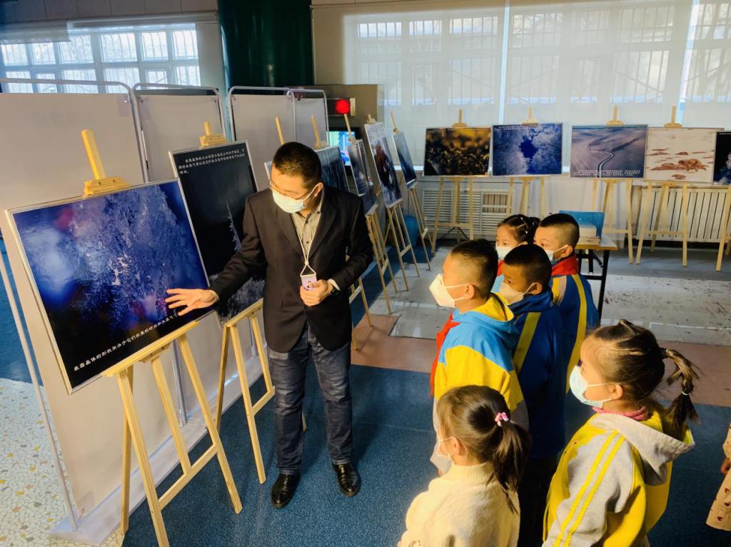 “冰雪奧秘科普攝影+科學實驗+國學詩詞”為來館參觀的各族群眾帶來豐富多彩且具有地域特色的科普活動。活動主要有三大看點:①百余幅照片,均由新疆本土科技工作者跋山涉水前往人跡罕至的雪峰冰川高原生地處拍攝完成;②上善若水,春之水·滋潤大地,夏之水·沁人心脾,秋之水·靜流氣爽,冬之水·晶瑩剔透,冰雪的世界使人對萬物之源水,有了更悠遠的遐思;③更有博士帶你一起探秘雪的奇境。