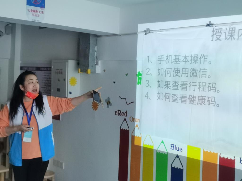 科普志愿者朱玲霞老師就智能手機密碼設置、健康碼、行程碼、核酸監測、疫苗接種查詢,手機網上購物、網上訂票、微信支付、看病預約掛號等與老年人生活相關的程序逐一向大家進行了演示,并與老大家開展了互動,對老人們提出的一些常見問題一一作了解答。