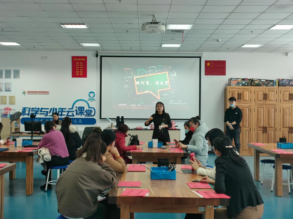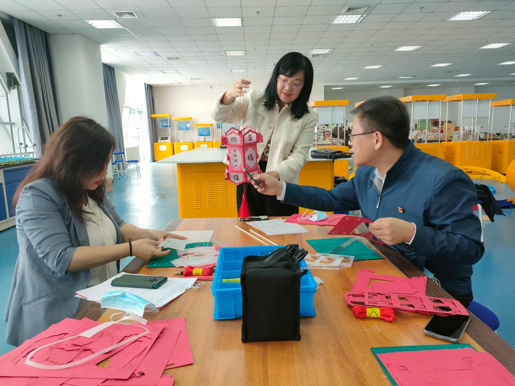 “做燈籠、鬧元宵”環(huán)節(jié)??死斠绤^(qū)青少年活動中心工作人員王峰首先為大家科普了元宵節(jié)掛燈籠的由來。王峰播放做燈籠PPT教程,為大家講解燈籠制作的方法,并走到操作臺手把手教大家制作。經過近一個小時的制作,一盞盞紅紅火火、漂亮精巧的燈籠燈籠制作完成了。大家紛紛興高采烈地拿著燈籠進行拍照留念,慶祝元宵快樂。