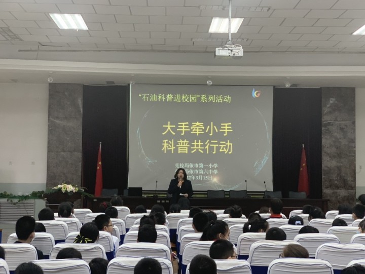 3月15日下午,克拉瑪依市第一小學五級部全體師生在克拉瑪依區(qū)科協(xié)以及第六中學師生的大力支持下,開展了“石油科普進校園”系列實踐活動——石油知識綜合實踐活動課程經(jīng)驗介紹主題講座。