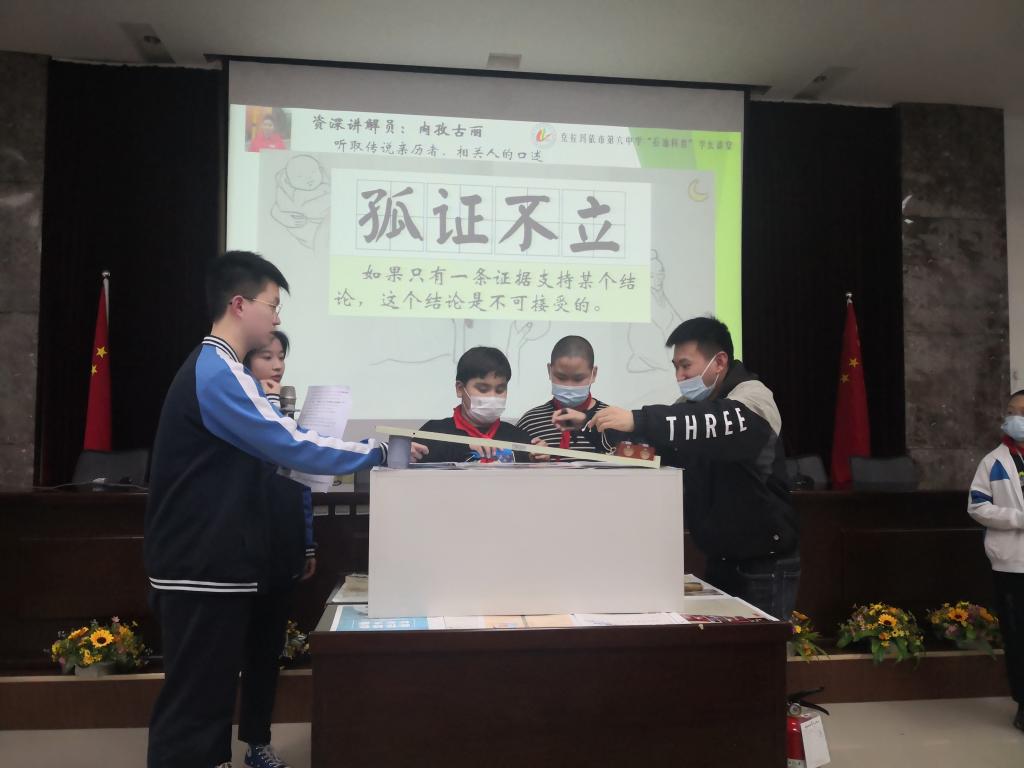 與以往專業(yè)講座不同的是,本次講座的主講人是來自第六中學高二的兩名學生。講座生動有趣,形式多樣。活動由一段視頻播放的關于黑油山之問開始,激發(fā)了學生的好奇心。隨后主講人通過引導提出問題、查閱文獻、聽取相關人口述等科學論證方式,采用現(xiàn)場互動問答、石油科學小實驗等形式,讓臺上動手操作的同學樂在其中,臺下的學生聽得津津有味。