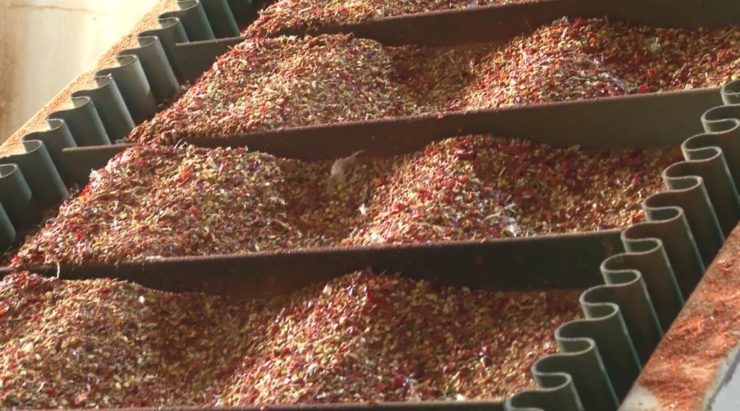 1月12日,記者走進和靜浩圓農(nóng)產(chǎn)品專業(yè)合作社,一股濃郁的辣椒味撲面而來。據(jù)該合作社理事長陳明偉介紹,目前合作社場地中共有400——500噸辣椒。進行初加工的品種有板椒、紅23、903,這些辣椒經(jīng)過上料去石、除塵、磨粉、造粒等工序,被制成辣椒粉、辣椒顆粒、剪把辣椒。