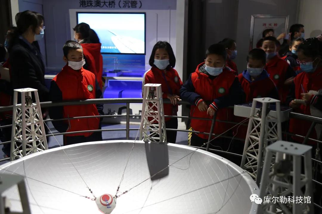 “3秒內(nèi)你們能說出一個(gè)中國(guó)當(dāng)下的創(chuàng)新成就嗎?”“C919飛機(jī)!”“‘雪龍?zhí)枴票 ?.....在港珠澳大橋展區(qū)前,講解員與庫(kù)爾勒市梨香小學(xué)的學(xué)生們愉快互動(dòng)。四年級(jí)學(xué)生田子琪非常喜歡科學(xué),在展覽區(qū)讓他重新感受到了科技的魅力,他說:“以前在書本和電視上才能看到這些厲害的成就,現(xiàn)在能近距離地接觸它們。沒想到港珠澳大橋這么長(zhǎng),又學(xué)到了一些知識(shí)。”