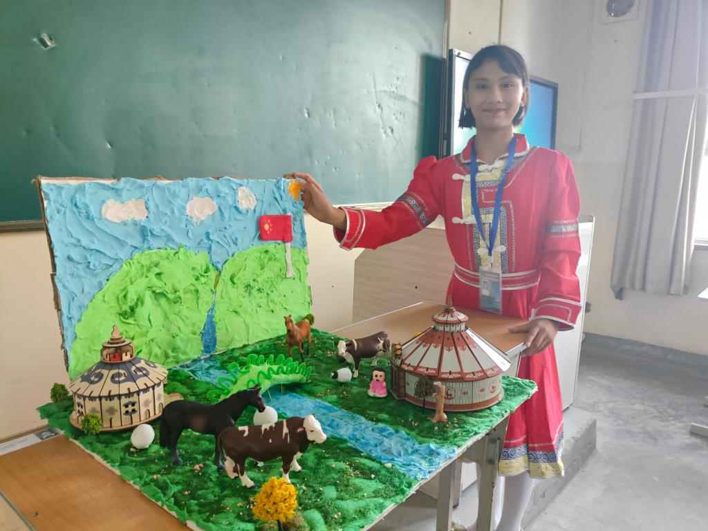 “今天我代表和田市伊里其鄉小學參加了民族團結共筑家園場景設計制作賽,在準備作品的過程中,我努力了解各少數民族的居住習慣、風土人情,學習到了很多知識,同時撰寫介紹詞、反復練習,努力提升自己的講解水平,最后獲得了這個項目小學組的金獎,我特別開心也很有成就感。今后,我會努力學習,為祖國繁榮富強、建設科技強國作出自己的貢獻?!焙吞锸幸晾锲溧l小學學生賽比熱·艾力激動地說。