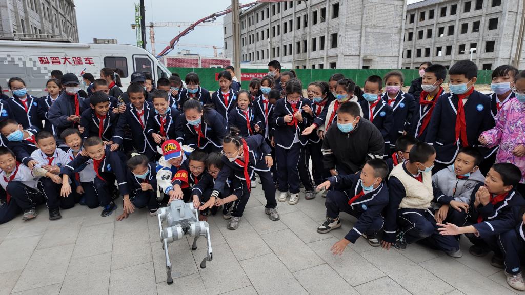 四足機(jī)器人成為全場(chǎng)最受歡迎的“明星”,跳躍、打滾、作揖、前滾翻……它靈活地做著高難度動(dòng)作,還伴隨著激揚(yáng)的音樂在校園翩翩起舞,引來師生們陣陣歡呼與喝彩,他們與機(jī)器狗握手互動(dòng),交到了第一個(gè)機(jī)器人“朋友”,開啟了對(duì)科學(xué)知識(shí)的好奇與探索,歡笑聲、驚呼聲、頓悟聲充滿校園。