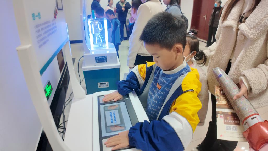 演播廳內氣氛熱烈,演播廳外同樣也熱鬧非凡。昌吉州科協將科普展柜、展架搬到了演出場地,孩子們在演出前后饒有興趣地操作體驗著這些神秘有趣的展教設備。既激發了他們對舞臺劇的好奇,又使他們對科學的興趣在體驗中得到釋放與催化。