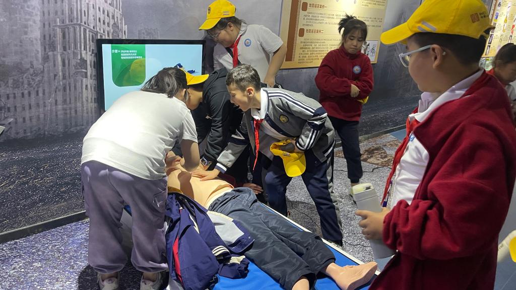 最后,在科技館輔導(dǎo)員的帶領(lǐng)下,青少年們參觀了防災(zāi)減災(zāi)地震科普展廳,體驗(yàn)搭建抗震建筑、心肺復(fù)蘇擬人救護(hù)、震后自救互救訓(xùn)練等科普活動(dòng),進(jìn)一步認(rèn)識(shí)到防災(zāi)減災(zāi)的重要性。