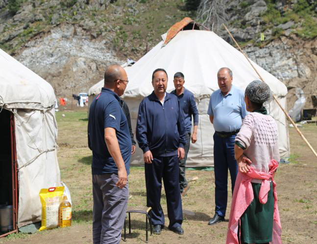 7月6日,阿勒泰地區科協黨組成員、主席孜亞提汗·胡那皮亞同志帶領科普隊干部前往地區鄉村振興示范村富蘊縣鐵買克鄉宏泰新村夏牧場開展“七一”、古爾邦節走訪慰問困難群眾活動,為困難群眾送去黨組織的關懷與節日祝福。
