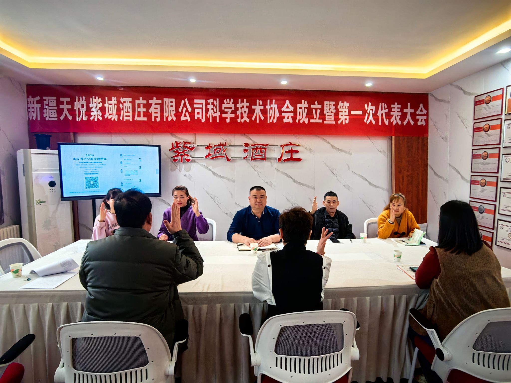 會議聽取了新疆天悅紫域酒莊有限公司科學技術協會籌備工作報告,審議通過《新疆天悅紫域酒莊有限公司科學技術協會章程》等,選舉產生了新一屆委員及科協主席、副主席、秘書長、委員。