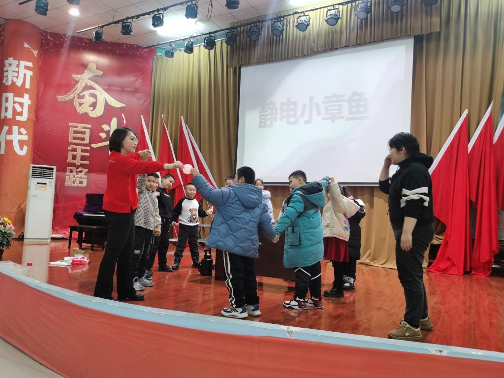 第三小學(xué)老師們“沉浮子”“掌中火焰”“空氣炮”的表演,讓三四年級(jí)的同學(xué)感受了科技的魅力,體驗(yàn)科學(xué)世界的神奇。科學(xué)秀不僅是老師們的展示,更是“小科學(xué)家”們展示的舞臺(tái)。實(shí)驗(yàn)小學(xué)的同學(xué)們運(yùn)用掌握的科學(xué)知識(shí)為大家?guī)?lái)了“維生素C褪色”和孩子們手牽手通過(guò)人體通電“點(diǎn)亮小燈泡”的科學(xué)展示。