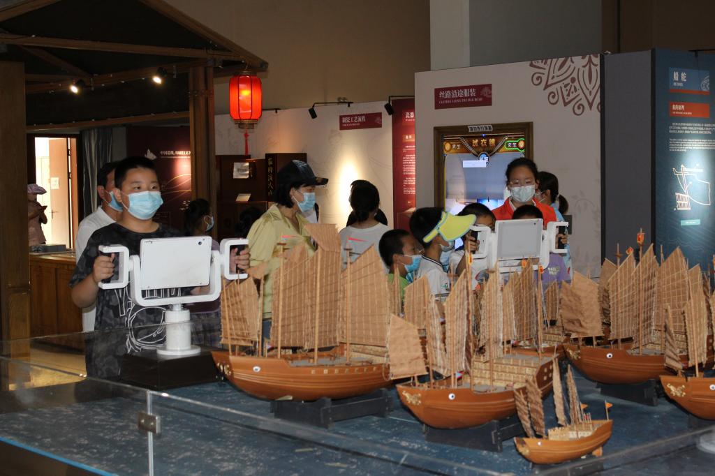 學(xué)生們興致勃勃地來到了《發(fā)現(xiàn)絲綢之路的智慧》主題展覽。整個展覽分為“對異域的想象”“帶什么商品去中國”“驛站與驛道”“漫游古代中國”“海上歷險”“世界在變”6個展區(qū)。在科技志愿者的引導(dǎo)下,學(xué)生們“化身”古代絲路旅行家和商人,領(lǐng)略沿陸上和海上絲綢之路傳播的古代科技與物質(zhì)文化,感受了一次古代商人挑選商品、運(yùn)送貨物、在海上歷險的特殊經(jīng)歷,也詳細(xì)了解到古代中國的絲綢、陶瓷、紙與印刷術(shù)的科技原理、工藝流程、傳播過程和國際影響,進(jìn)一步增強(qiáng)了民族自信心和自豪感。