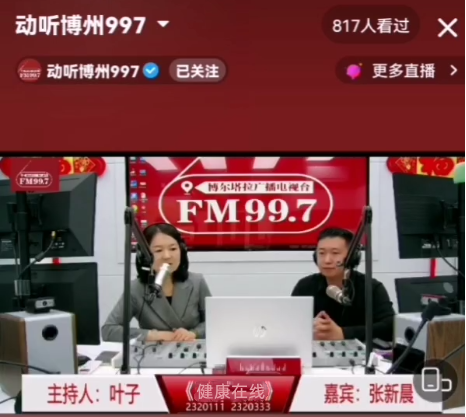 活動(dòng)走進(jìn)《動(dòng)聽(tīng)博州997》直播間《健康在線》欄目,開(kāi)展腦卒中相關(guān)科普。直播現(xiàn)場(chǎng),神經(jīng)中心醫(yī)生張新晨與聽(tīng)眾們分享了預(yù)防卒中的方式方法,通過(guò)分析如何改善腦卒中的危險(xiǎn)因素,使腦卒中可防可治的觀念深入人心,并就卒中防治存在的院前延誤時(shí)間較長(zhǎng)、溶栓救治率較低等問(wèn)題,向大家講解了如何進(jìn)行有效的早期識(shí)別和院前救護(hù)。