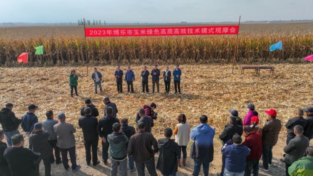 隨后,與會人員觀摩了博樂市阿熱勒托海牧場蘇門迭布斯格村、博樂市小營盤鎮(zhèn)烏蘭克日木村玉米種植區(qū),專家及技術(shù)員現(xiàn)場對玉米實收進(jìn)行了測產(chǎn)。
