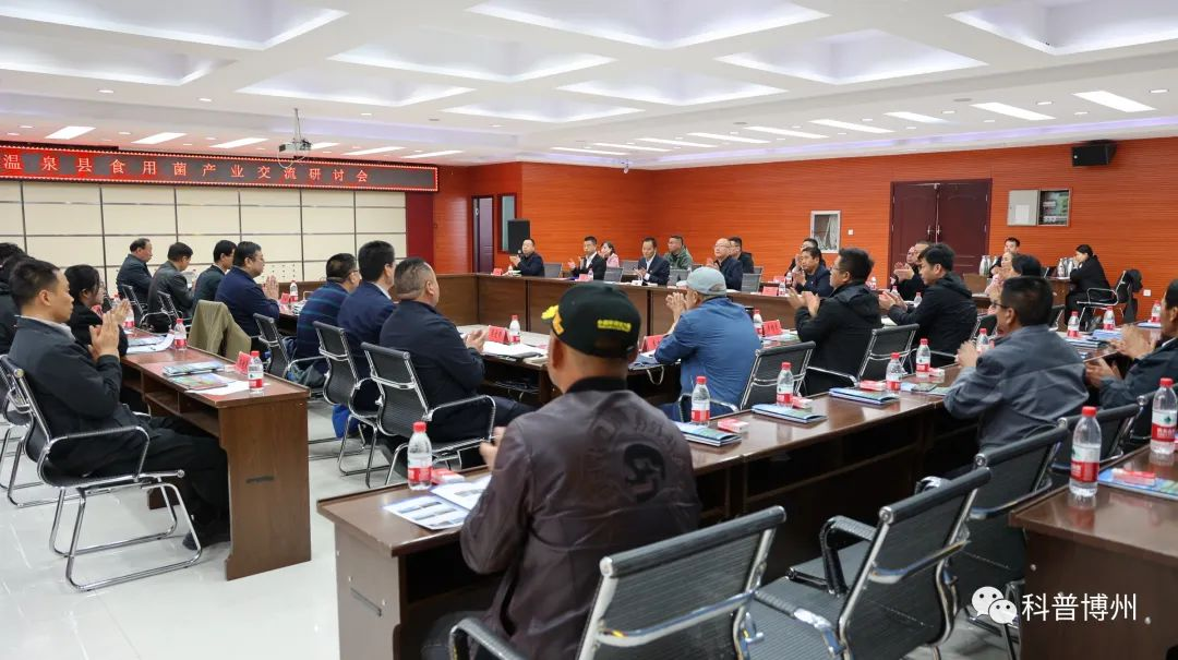 5月10日,由溫泉縣農業農村局、溫泉縣科協、溫泉縣天源花卉有限責任公司聯合舉辦的溫泉縣食用菌產業發展研討會在溫泉縣舉行。新疆食用菌協會、新疆農科院、石河子大學、新疆農墾科學院、溫泉縣政府、博州科協、博州工商聯、第五師雙河市科協、第五師83團、88團、第五師和第六師農科所相關專家領導,以及來自博州各縣市食用菌種植戶、本地食用菌技術人員共60余人參加研討活動。