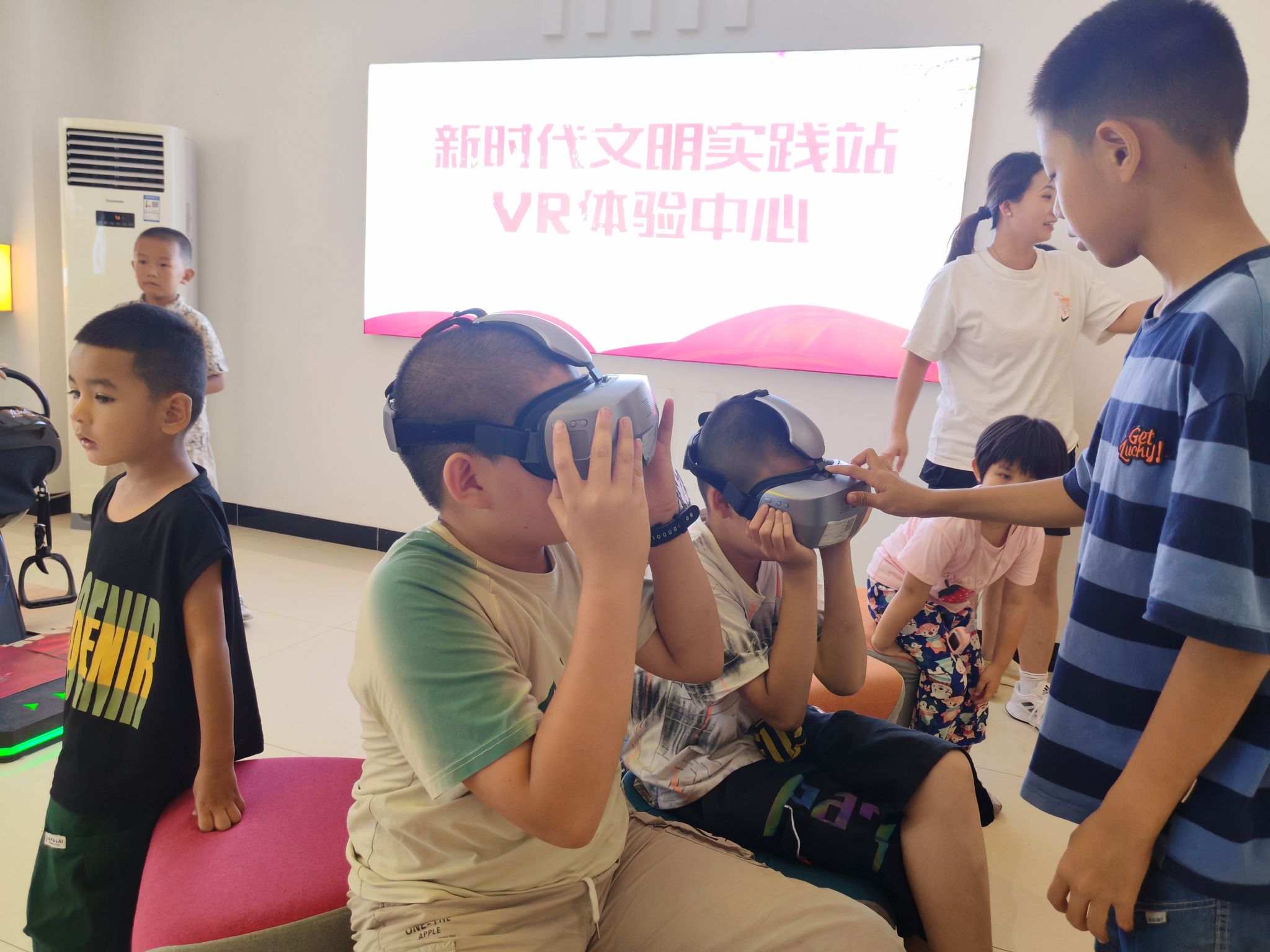 在科普館內,居民和孩子們被機器狗、對弈機器人、海陸空戰機模型、VR眼鏡、紅色戰騎等展品吸引。在工作人員的引導下,孩子們去觸摸、去感知、去探索展品的原理,直觀地感受科技帶來的驚喜和樂趣。
