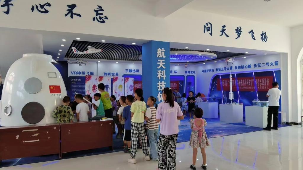 在科普館航空航天展廳中,天宮空間站系列、神舟、長征載人火箭系列、嫦娥四號月球巡視器的互動模型及我國航空航天發展歷程展示等展品,讓青少年了解我國航空航天的發展歷史和最新成果。