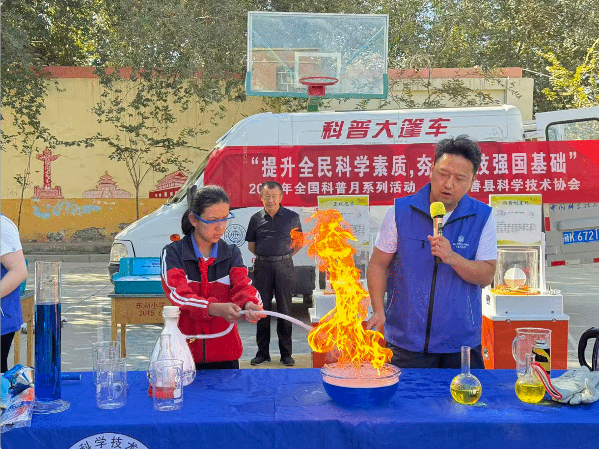 活動(dòng)現(xiàn)場(chǎng),科普大篷車(chē)化身為流動(dòng)科技館,懸掛全國(guó)科普月宣傳橫幅2條、鑄牢中華民族共同體意識(shí)宣傳橫幅1條、展出8類(lèi)主題科普展板22張(其中鑄牢中華民族共同體意識(shí)展板7張),展出魚(yú)洗、神奇的箭頭、機(jī)械伸縮花、正視壓力、伯努利星環(huán)、實(shí)物金字塔、圖形變換、珠子塔8件科普展品,直接受益師生401人。
