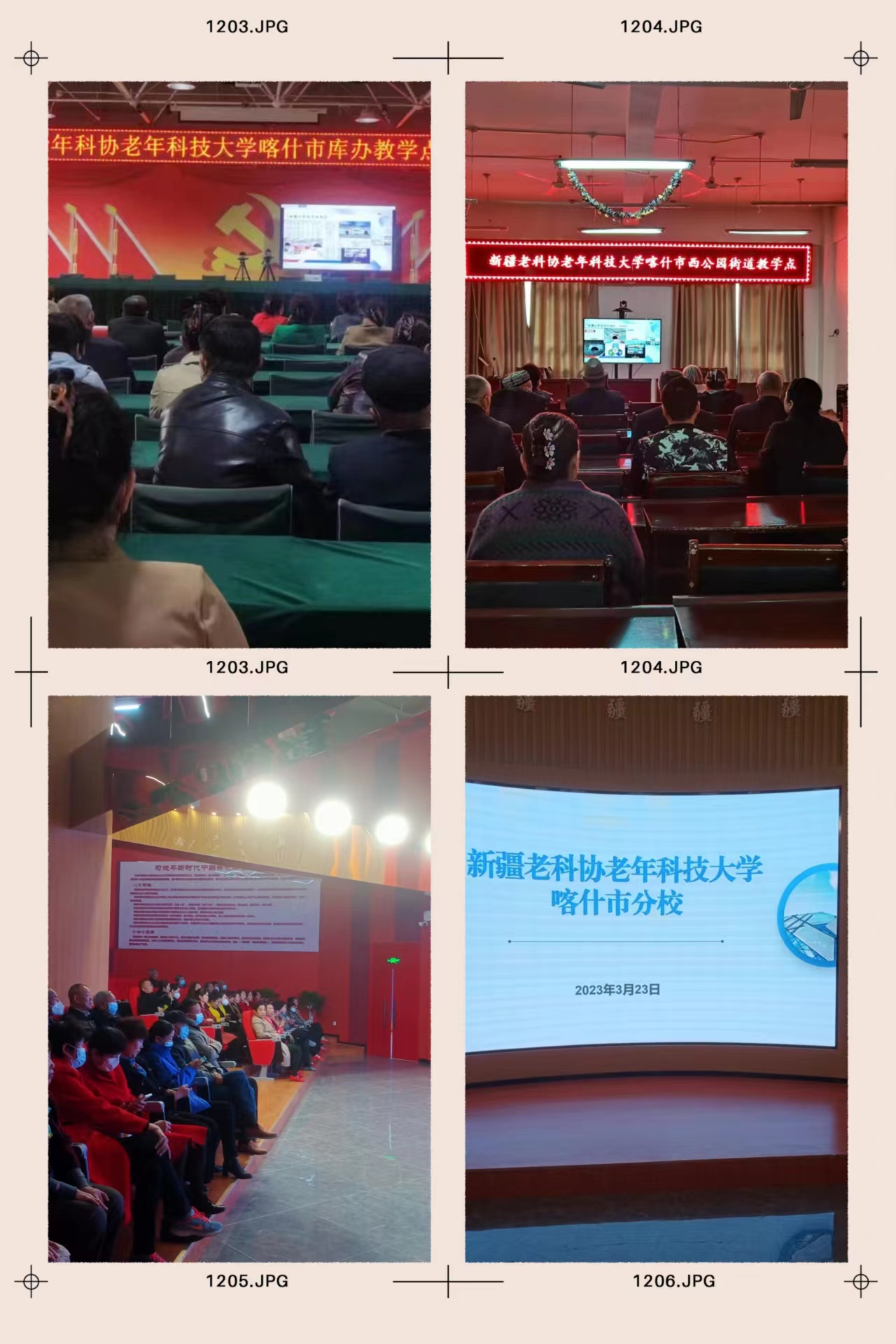 2023年3月23日上午,根據自治區、地區老科協老年科技大學第三學年第一學期開班典禮并正式開課的總體要求,喀什市科學技術協會對此高度重視,堅持線上線下有機結合,組織動員全市19個鄉(鎮)街道教學點和市分校共919名學員(其中:線上370名、線下549名)學員收聽收看新疆老科協老年科技大學開班典禮及專家教授授。
