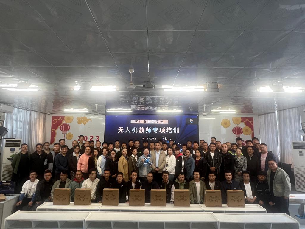 10月20日喀什地區科協、喀什市科協、喀什市青少年活動中心在喀什市第十小學聯合開展面向喀什市各中小學校、職業技術學校、特殊教育學校的82名科技教師的青少年無人機教師專項培訓。