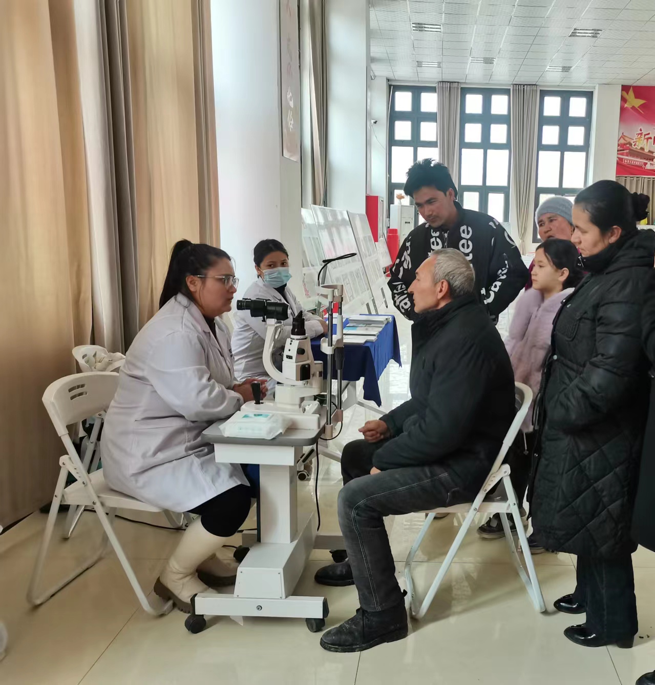 活動開始伊始,科普館里的小機器人隨著動感的音樂舞動起來,義診活動正式開始。隨后由阿迪亞眼科醫院的專家為大家講解主題為“共同呵護孩子眼健康,讓他們擁有一個光明未來”的關于眼科疾病的原因、治療措施、預防方法等內容的健康科普講座。在義診活動中,還為村民及孩子們提供了免費的眼科檢查和咨詢服務,包括視力檢查、角膜炎篩查等服務,并告知健康用眼注意事項及治療的知識手冊、眼睛保健等多種宣傳單頁,讓廣大村民們擁有好的視力。