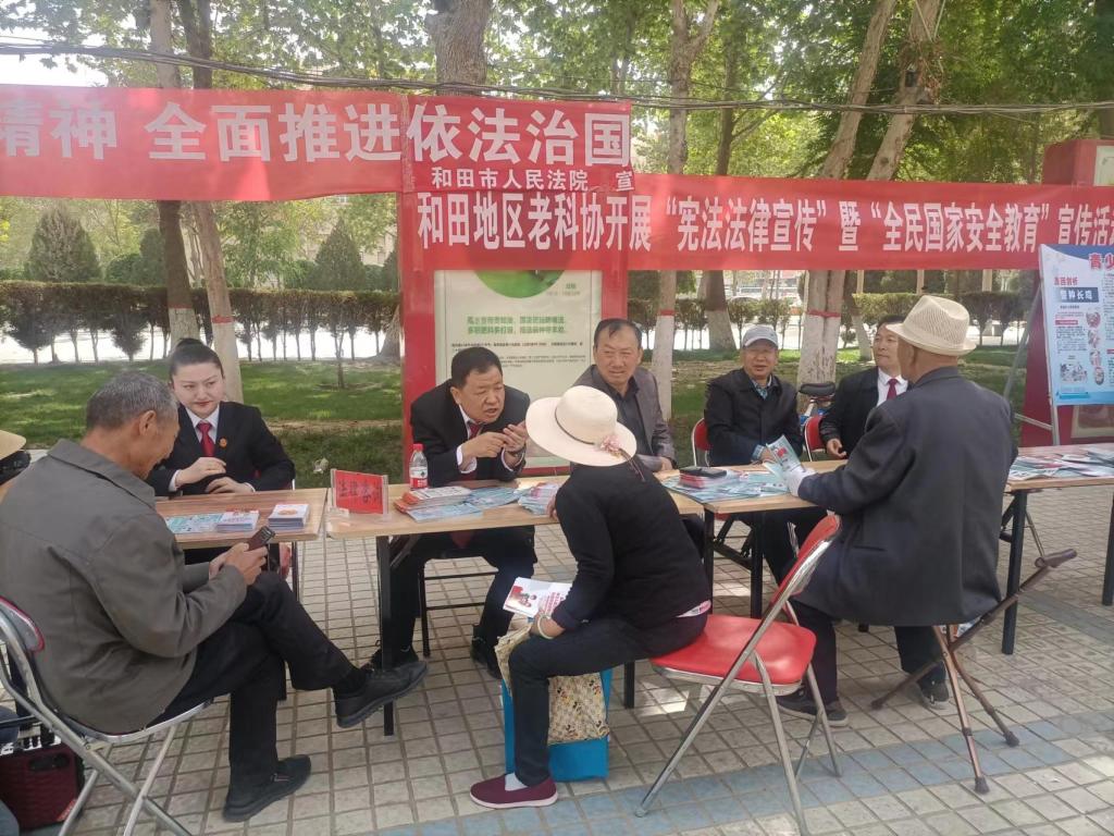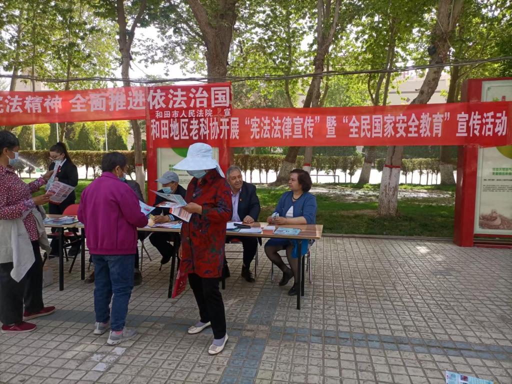 為進一步增強群眾法律意識,營造濃厚的法律學習氛圍,4月15日,和田地區科協組織老科技工作者聯合市多家單位在和田市團結廣場開展自治區第二十個“憲法法律宣傳月”暨第八個“全民國家安全教育日”集中宣傳活動,大力弘揚憲法精神,講好憲法故事,傳遞法治聲音。參加宣傳活動的人員有和田地區科協領導米娜瓦爾·胡冬拜地、老科協副會長任建民、副會長高明國、常務理事買買提·庫爾班等8人參加此次宣傳活動。